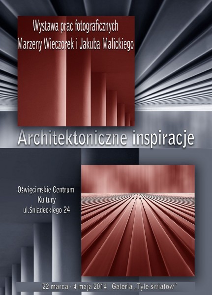 W dniach od 22 marca do 4 maja 2014 roku (wernisaż 22 marca o godzinie 18:00) w galerii "Tyle światów" Oświęcimskiego Centrum Kultury prezentowana była wystawa prac fotograficznych Marzeny Wieczorek i Jakuba Malickiego pt. "Architektoniczne inspiracje".