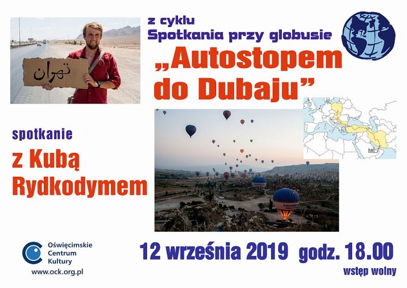 12 września 2019 roku - po wakacyjnej przerwie - w Oświęcimskim Centrum Kultury odbyło się siedemnaste - z cyklu podróżniczych "Spotkań przy globusie" - spotkanie z podróżnikiem Kubą Rydkodymem pt. "Autostopem do Dubaju".