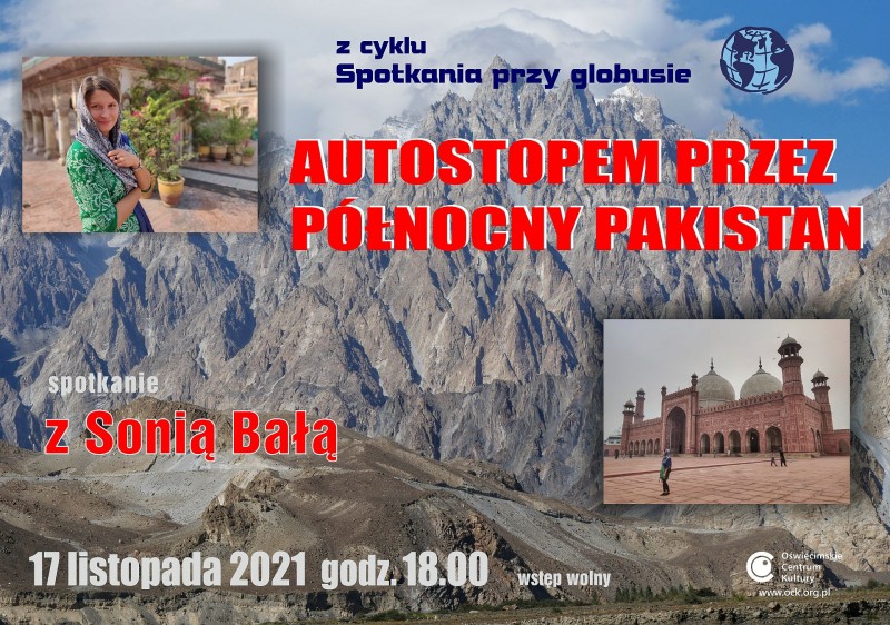 17 listopada 2021 roku w Oświęcimskim Centrum Kultury odbyło się trzydzieste siódme z cyklu podróżniczych "Spotkań przy globusie" - spotkanie z Sonią Bałą pt. "Autostopem przez północny Pakistan".