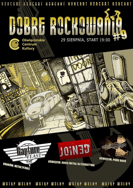 29 sierpnia 2013 roku odbyła się dziewiąta edycja „Dobrych rockowań”. I tym razem nie zabrakło sporej dawki rockowego hałasu, jak zwykle w różnorodnej formie. Na scenie w sali kameralnej zagrały oświęcimskie zespoły Katastrofa (punk rock) i Joined (rock/metal), a także krakowski RaptureFeast, z niebanalną mieszanką metalu i rock'n'rolla.