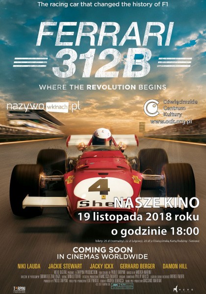 19 listopada 2018 roku w Naszym Kinie Oświęcimskiego Centrum Kultury został zaprezentowany, z cyklu "Art Beats", film dokumentalny o jednym z najpiękniejszych i najbardziej innowacyjnych samochodów marki Ferrari pt. "Ferrari 312B".