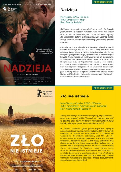 W dniach od 14 do 20 lipca 2020 roku w Naszym Kinie Oświęcimskiego Centrum Kultury odbywały się przedpremierowe projekcje filmów nagradzanych i prezentowanych na światowych festiwalach w ramach Festiwalu Filmowego Wiosna Filmów w Polsce 2020.
