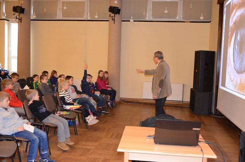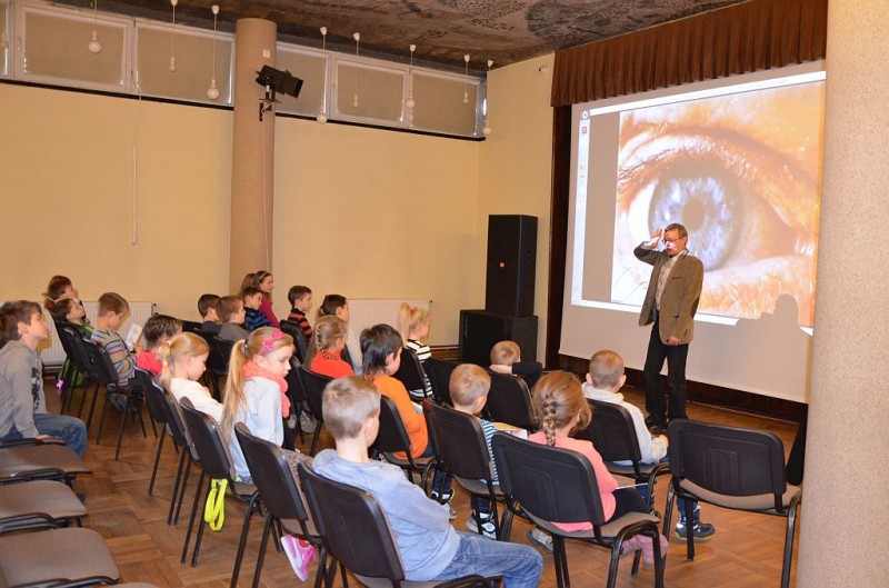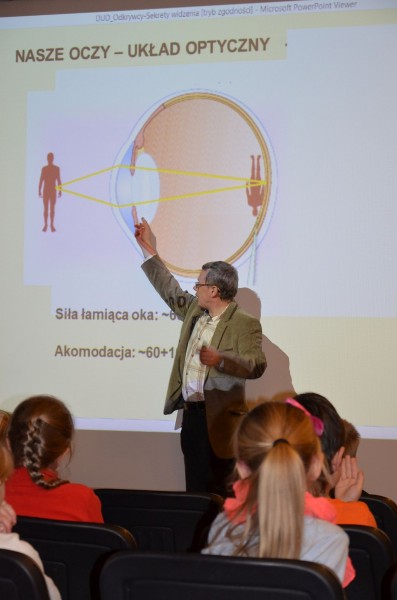 Wykład o działaniu zmysłu wzroku oraz niektórych złudzeniach. W czasie spotkania jego uczestnicy dowiedzieli się, jak zbudowane są nasze oczy, przekonali się, że choć za ich pomocą odbieramy obrazy, to jednak inaczej niż robi to aparat fotograficzny. Studenci dowiedzieli się również, dlaczego piraci nosili opaskę na oku.
