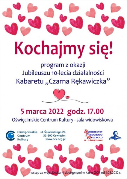 15 lutego i 5 marca 2022 roku w Oświęcimskim Centrum Kultury został zaprezentowany, przez Kabaret "Czarna Rękawiczka" z Uniwersytetu Trzeciego Wieku z Oświęcimskiego Centrum Kultury premierowy program z okazji jubileuszu 10-lecia działalności, pt. "Kochajmy się".