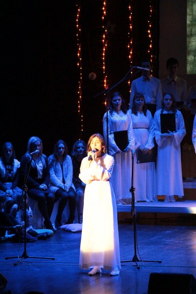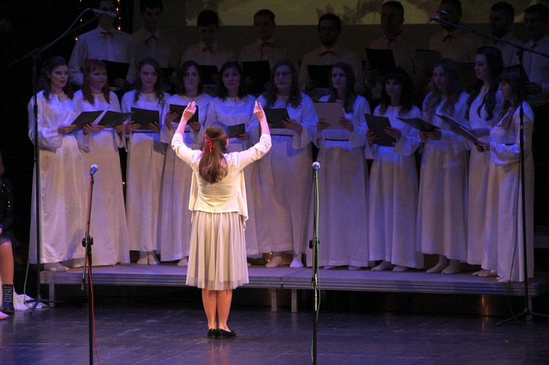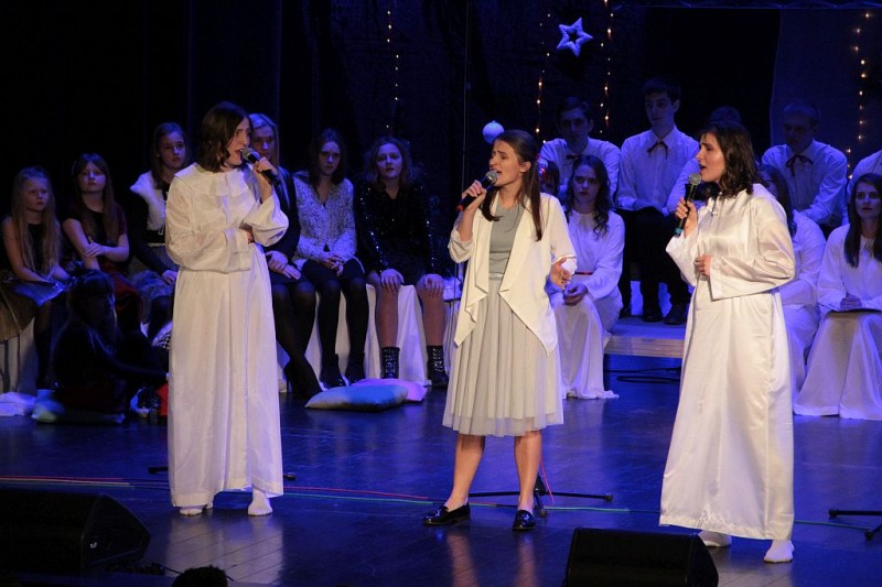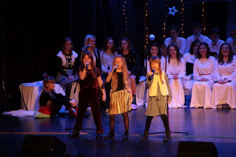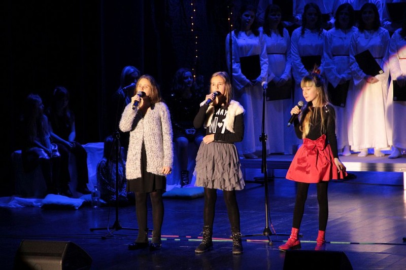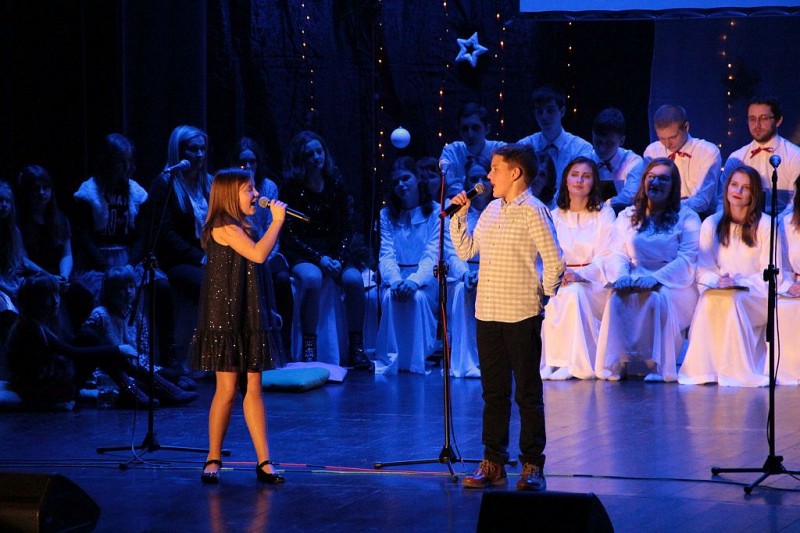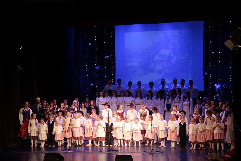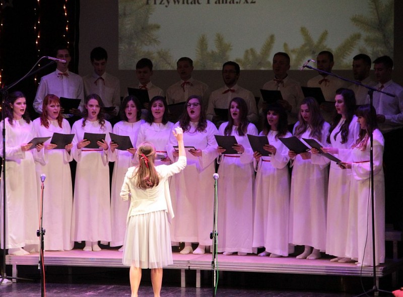 Wspólne kolędowanie w wykonaniu Chóru Centrum św. Maksymiliana w Harmężach, uczestników zajęć wokalnych Osiedlowego Domu Kultury Zasole, Reprezentacyjnego Zespołu Pieśni i Tańca Miasta Oświęcim Hajduki oraz zasiadających na widowni mieszkańców miasta.