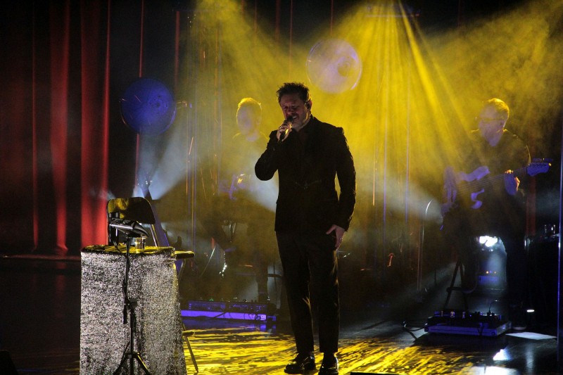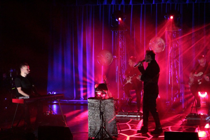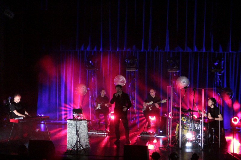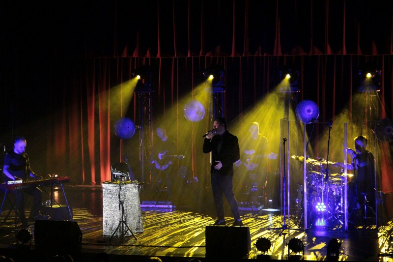 na zdjęciu Andrzej Piaseczny z zespołem na scenie