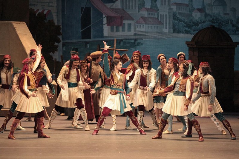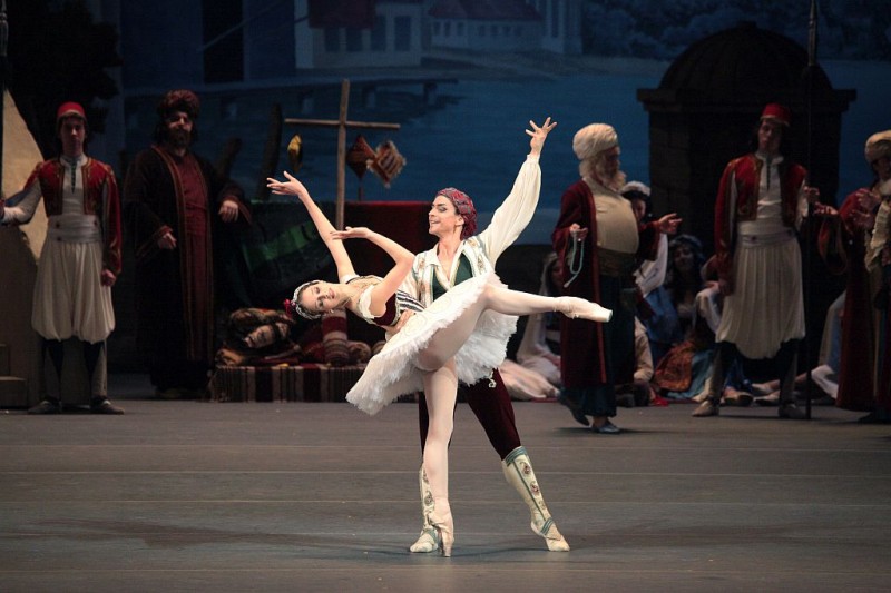 Korsarz | Le Corsaire muzyka: Adolphe Adam choreografia: Marius Petipa rekonstrukcja: Aleksiej Ratmański, Juri Burłaka nowa choreografia: Aleksiej Ratmański dyrygent: Paweł Kliniczew scenografia: Boris Kamiński kostiumy: Elena Zaicewa światło: Damir Ismagiłow obsada: pierwsi tancerze, soliści, koryfeje i zespół baletowy oraz orkiestra Teatru Bolszoj czas trwania: 210 minut