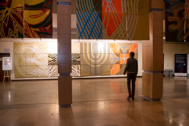 Prezentacja projektu LandScape_x_9_SiteSpecific w przestrzeniach Oświęcimskiego Centrum Kultury miała postać dizajnersko-malarskiej instalacji.
