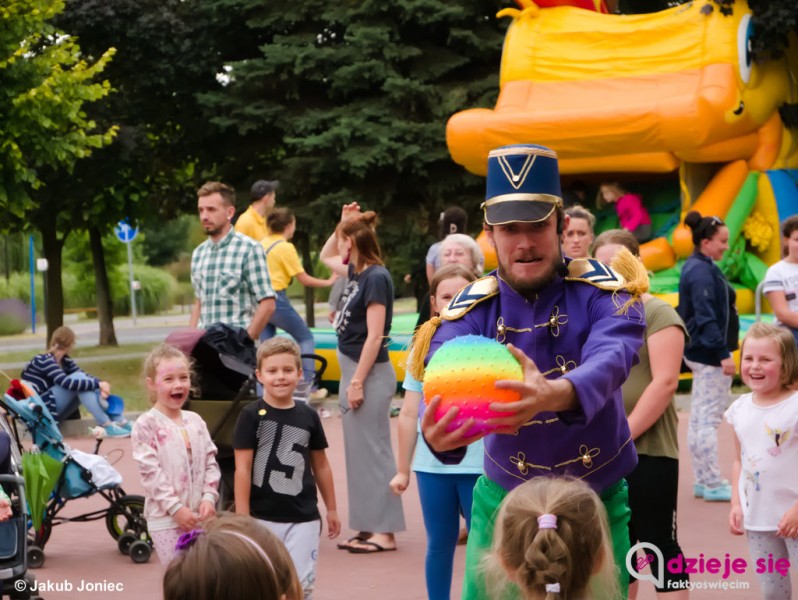 Lato, ach to ty - dmuchańce, interaktywny spektakl w wykonaniu Teatru w Ruchu pt. Cyrk w ogrodzie w ramach Wakacji z Oświęcimskim Centrum Kultury >>