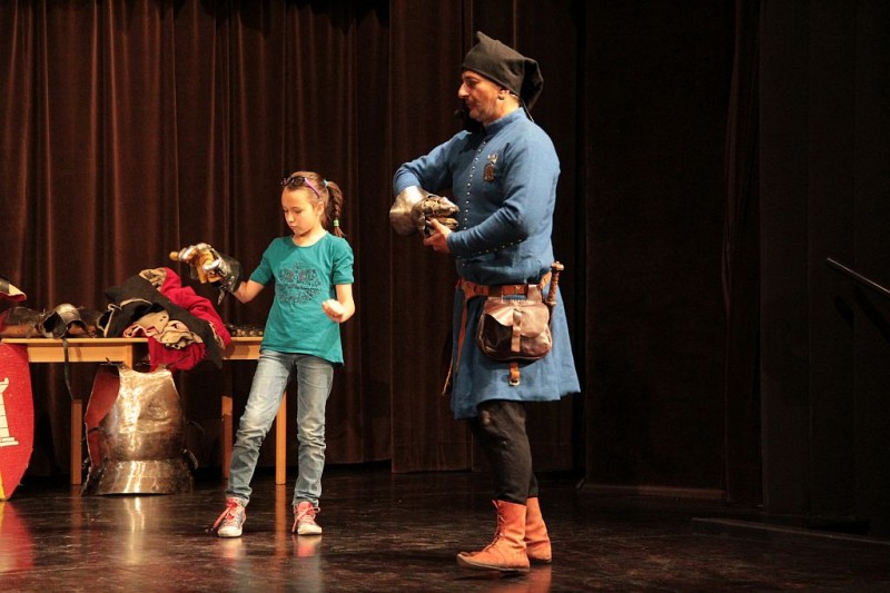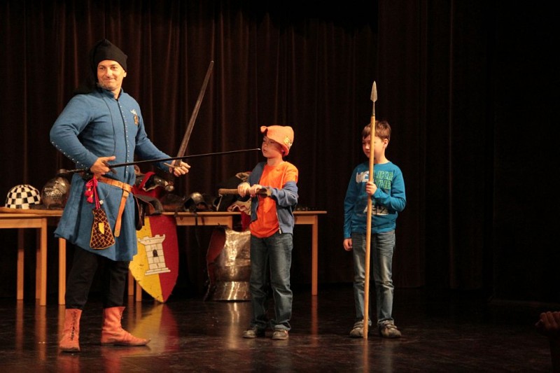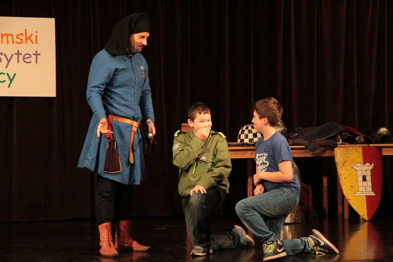 Wykład był interaktywnym spotkaniem z historią. Młodzi studenci, w trakcie pokazów dotyczących historii średniowiecza - życia i obyczajów rycerskich, broni, wypraw krzyżowych, wojny z krzyżakami, mogli przekonać się o tym, co jest prawdą, a co jedynie legendą. Poznali średniowieczne stroje - wielu studentów mogło je przymierzyć - oraz uzbrojenie i elementy zbroi.