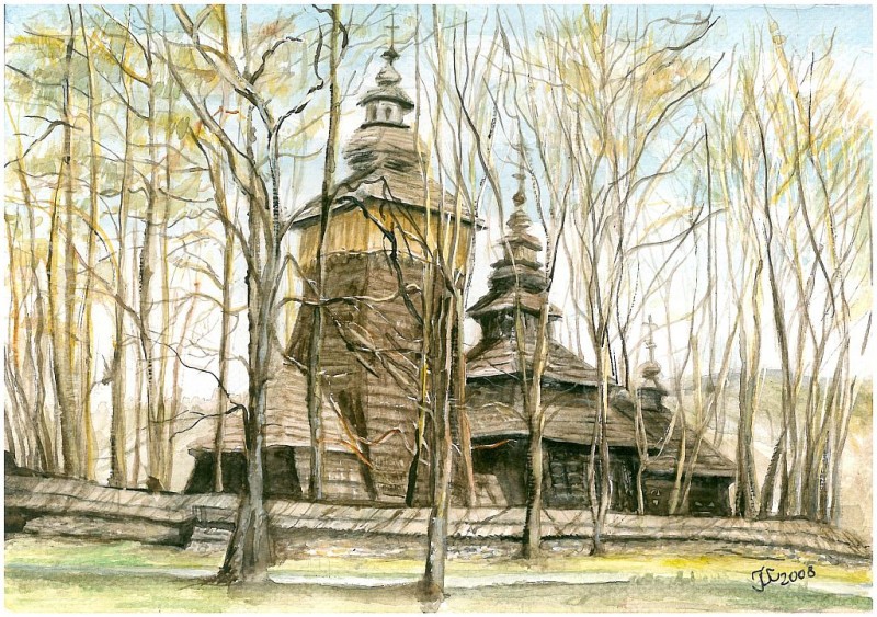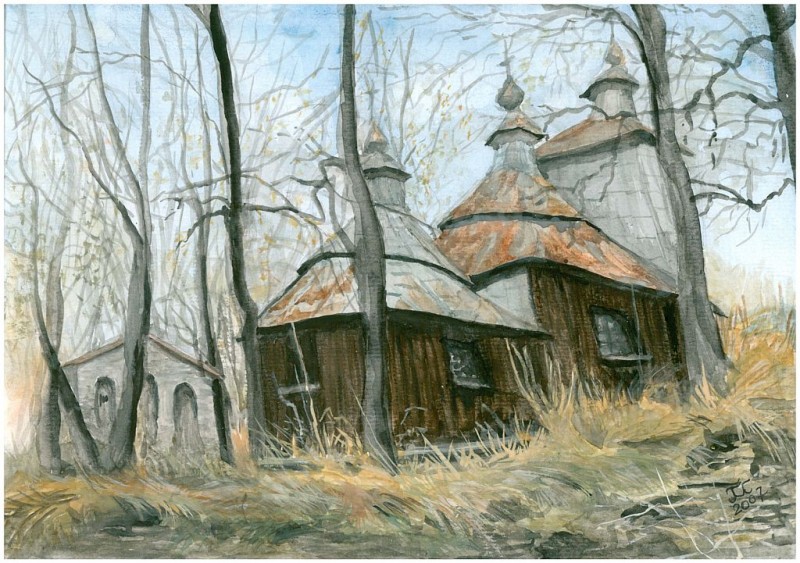 Wystawa "Po tamtej stronie drzwi" jest wędrówką po szlaku drewnianej architektury, nie tylko tropem łemkowskich i bojkowskich cerkwi, drewnianych kościołów, starych domów oraz miejsc, po których pozostały tylko nazwy na mapie. Mój szlak biegnie także ścieżkami Podkarpacia, zakręcając dalej na wschodnią część Roztocza oraz Podlasia.