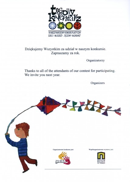 Do udziału w konkursie napłynęło 1600 prac z 6 krajów - Polski, Bułgarii, Indonezji, Chin, Serbii oraz Rosji. Najlepsze z nich znalazły się w "Tęczowym kalendarzu" na 2011 rok.