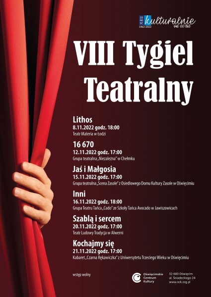 W dniach od 8 do 21 listopada 2022 roku w Oświęcimskim Centrum Kultury odbywały się prezentacje VIII Tygla Teatralnego.