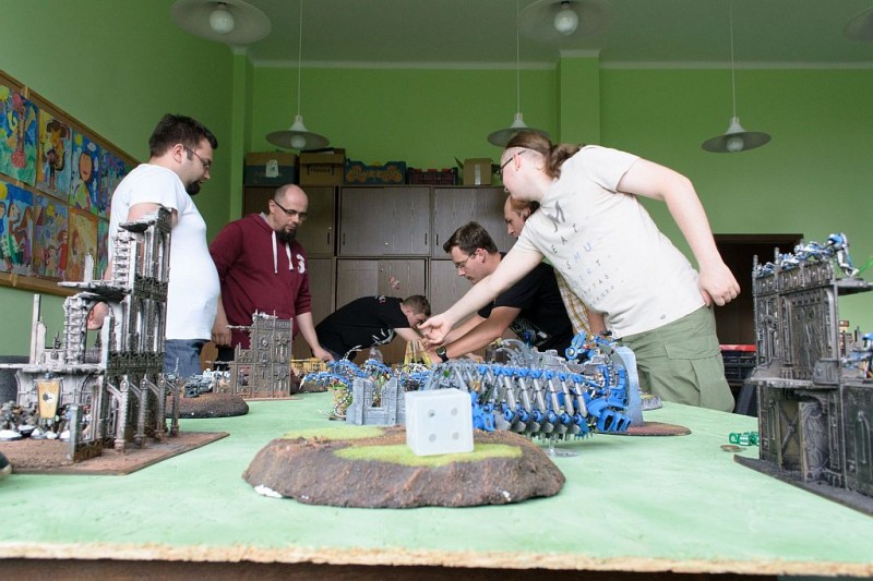 29 czerwca 2014 roku Oświęcimski Klub Fantastyki zaprosił na pierwsze z serii wakacyjnych spotkań tematycznych. W tym dniu, od godzin rannych, w OCK odbywał się mini turniej gry bitewnej Warhammer 40.000. To popularna gra strategiczna, z fabularnym tłem, której akcja rozgrywa się w dalekiej przyszłości. Opracowany przez brytyjskie studio Games Workshop, Warhammer 40.000 to także „młodszy brat” najbardziej rozpowszechnionej gry bitewnej na świecie, czyli Warhammera Fantasy Battle, utrzymanego z kolei w realiach fantasy. Popularna „Czterdziestka” charakteryzuje się efektywnie wyglądającymi modelami statków kosmicznych i armii, a także szczegółowymi, kilkupoziomowymi makietami, oddającymi realia świata dalekiej przyszłości. Świat Warhammera 40.000 doczekał się także innych gier (planszowych, karcianych, fabularnych, komputerowych), serii książek, a nawet muzycznej oprawy.