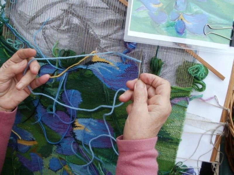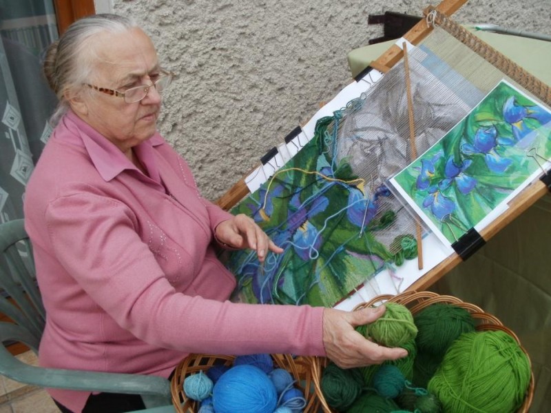 ... jeszcze tylko zarobienie. Tak kończy każdą swoją pracę Ewa Stec - autorka gobelinów prezentowanych na wystawie.