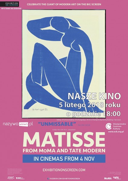 5 lutego 2018 roku w Naszym Kinie Oświęcimskiego Centrum Kultury został zaprezentowany, z cyklu "Wystawa na ekranie" , film zrealizowany w Tate Modern w Londynie i MoMA w Nowym...